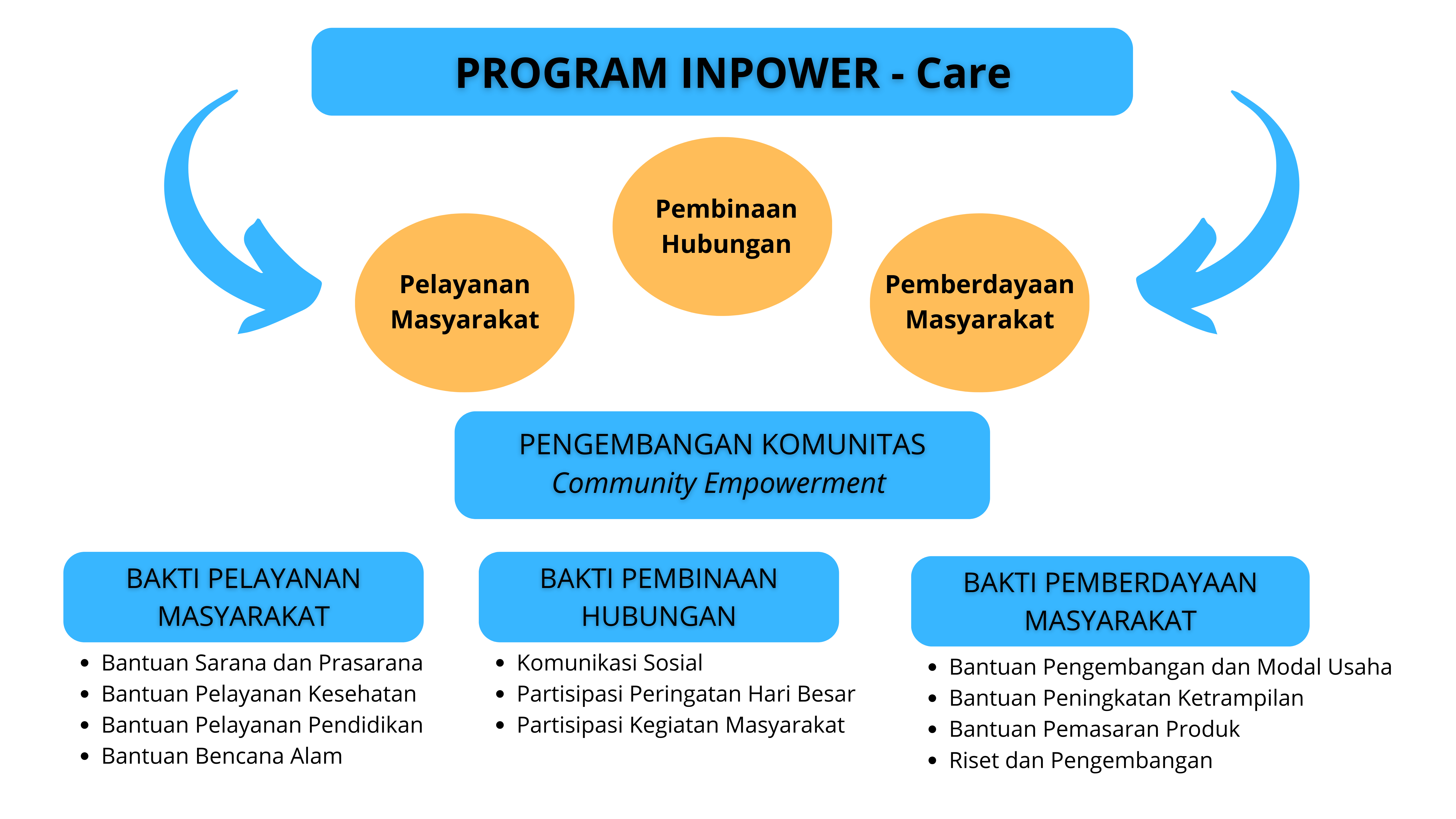 INPOWER-CARE adalah kegiatan pelibatan dan pengembangan komunitas yang dilakukan Perusahaan sebagai wujud tanggung jawab sosial dan tata kelola Perusahaan yang baik. INPOWERCARE bertujuan untuk memperbesar akses masyarakat agar mencapai kondisi sosial, ekonomi, dan budaya yang lebih baik dari sebelumnya. Sehingga, kehidupan masyarakat di sekitar wilayah operasional Perusahaan diharapkan menjadi lebih berdaya dan mandiri dengan kualitas dan kesejahteraan yang lebih baik. Penyelenggaraan INPOWER-CARE merupakan perwujudan visi dan misi Perusahaan, khususnya bersahabat dengan lingkungan serta perwujudan Tanggung Jawab Sosial dan Lingkungan (TJSL) Perusahaan sebagai bagian dari tata kelola perusahaan yang baik.